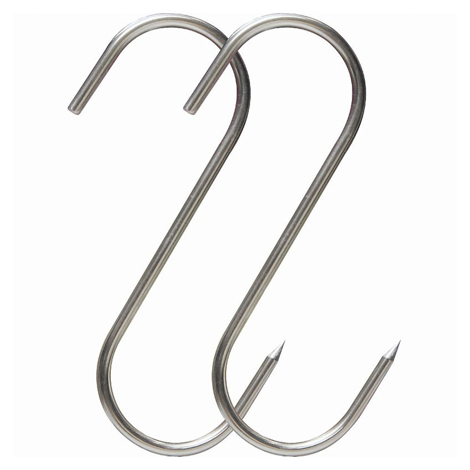 - Kit com 2x Ganchos em S feitos em aço inox 09cm ideal para Assar, Defumar, Pendurar Carnes, Churrascos, Costela, Frango.